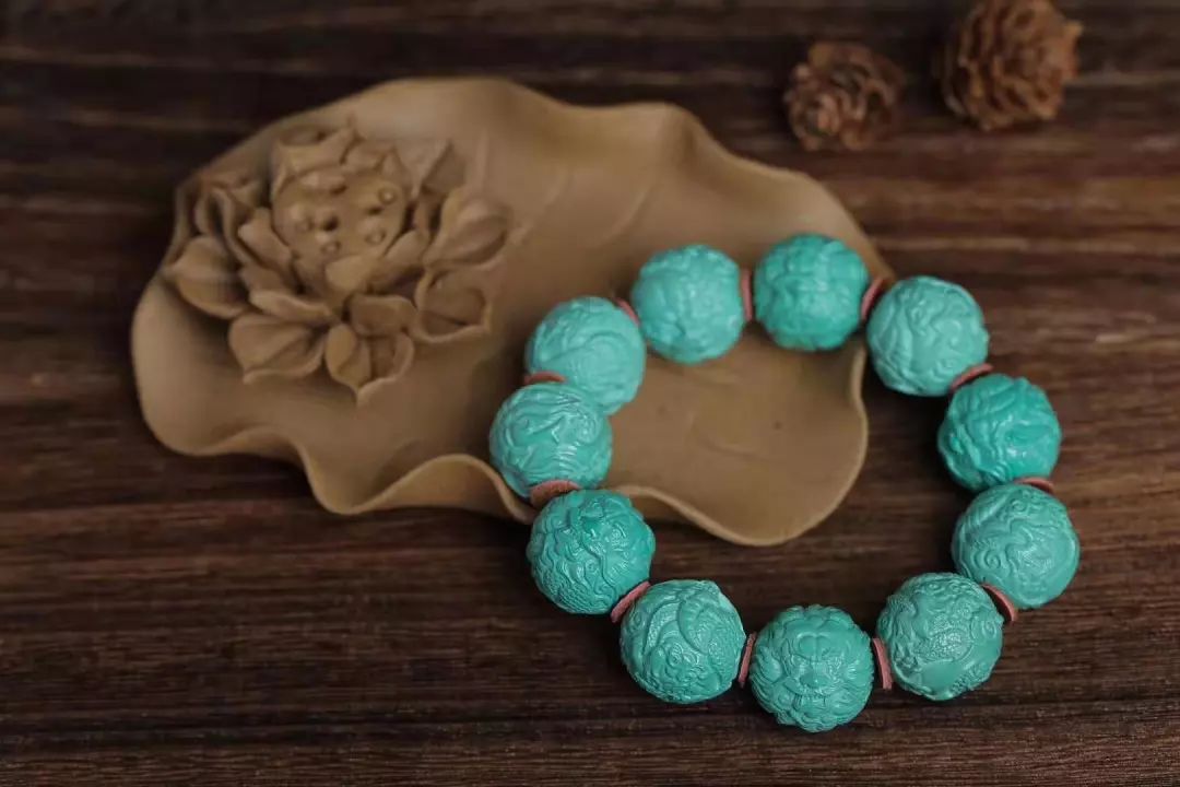 蒙松这位后起之秀,近来很受文玩人的宠爱。蒙松价格便宜,颜色是饱和度较高的蓝绿色,凸显别致,光泽感强,这样的蒙松你也值得拥有。