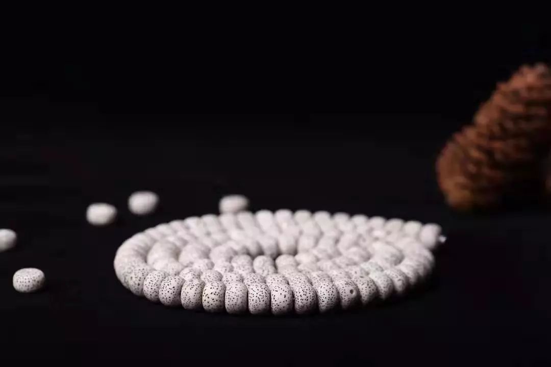 星月菩提一直都是咱们文玩人的宠儿。种子胚芽的位置形成圆形孔洞,周围黑点如繁星密布,呈众星捧月之势,灰、白、棕的基本色调给人沉稳大气的感觉。作为日常穿着搭配的点睛之笔,简直再好不过了。