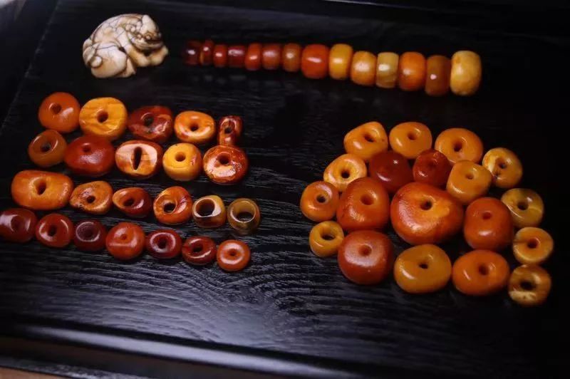 最后,其实很多造假的人都有犯了欲盖弥彰的错误,这里大家有一个误区,觉得古代人手工艺技术远不如现代,因此对称的打孔应该非常少见,造假者就利用人们的这一心理,故意将孔道打成很不对称的样子,孔道表现出很明显的对打孔痕迹。其实真正的老蜜蜡不是这样,多数孔道平直,大家不要低估古代的工艺呀。