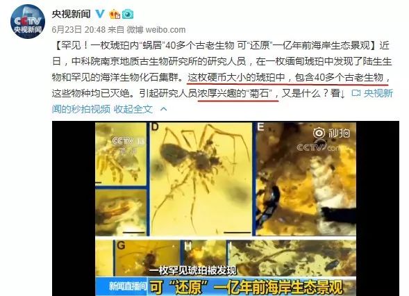 原来,中科院研究人员在一枚缅甸琥珀中发现了40多种陆生生物、海洋生物化石,还有古老的“菊石”将这块琥珀的历史推定到了1亿年前。
