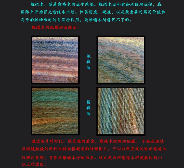 愈疮木的特色是油性大、硬度高、密度大、数量少
