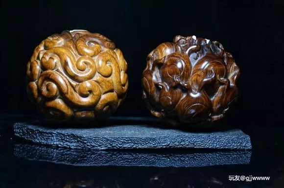 ,独具特色。在文玩圈,它因油性大、密度大,盘玩起来不易裂还耐盘。此外,愈疮木有檀香味,边材呈棕黄色,心材暗黄褐色、暗褐色、绿黑褐色,深受不少玩友的喜爱。