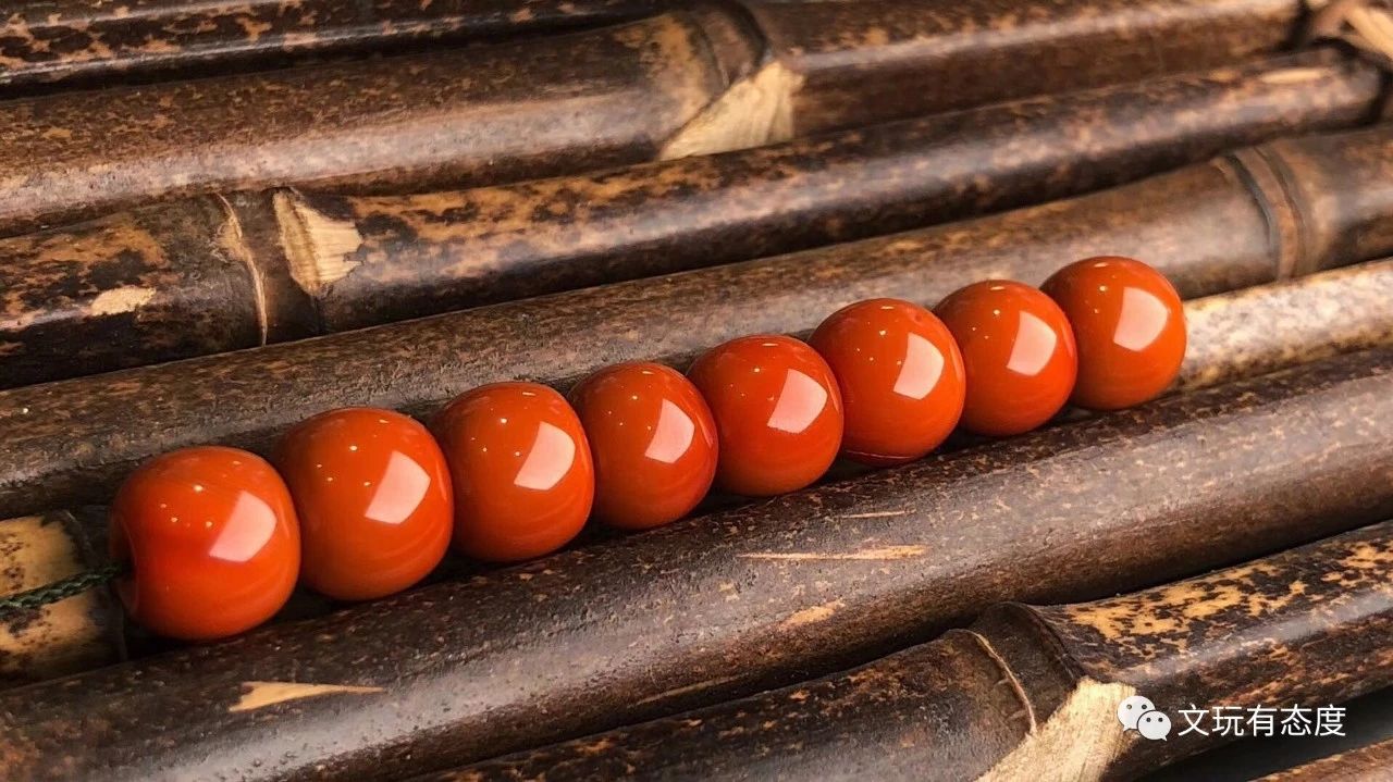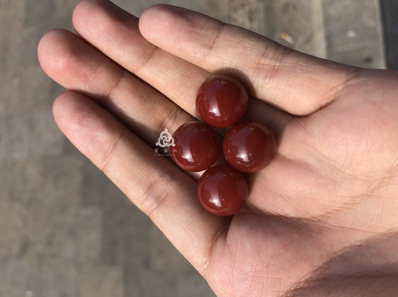 下面这四颗珠子,虽然有点玛瑙纹,单颗珠子大概一万五左右,但是凑成单圈,每颗就能卖上两三万。