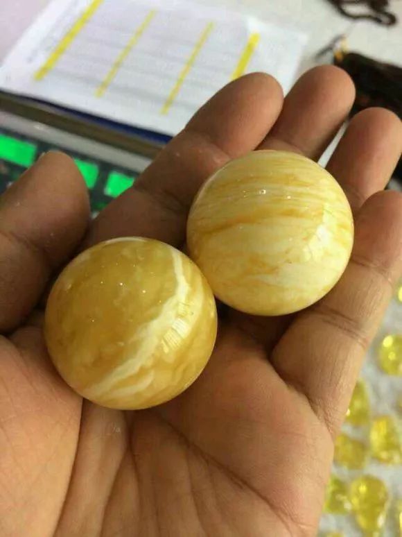 车上一对尺寸接近50的大蜜蜡健身球,拿出去玩,见人绝对被称赞666!