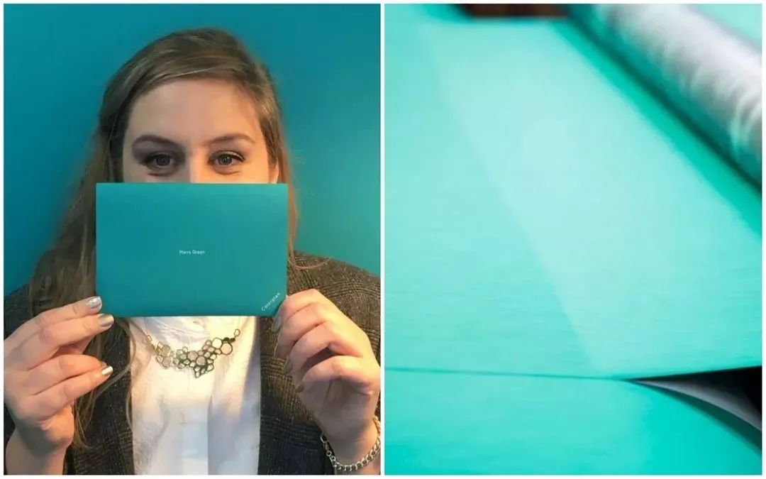 英国百年造纸商G.F Smith,不仅把这事儿漂漂亮亮的办了,还把选出来的“世界最受欢迎的颜色”,送给了它的提选者,联合教文组织成员,丹麦女孩安妮·马尔斯(Annie Marrs)。