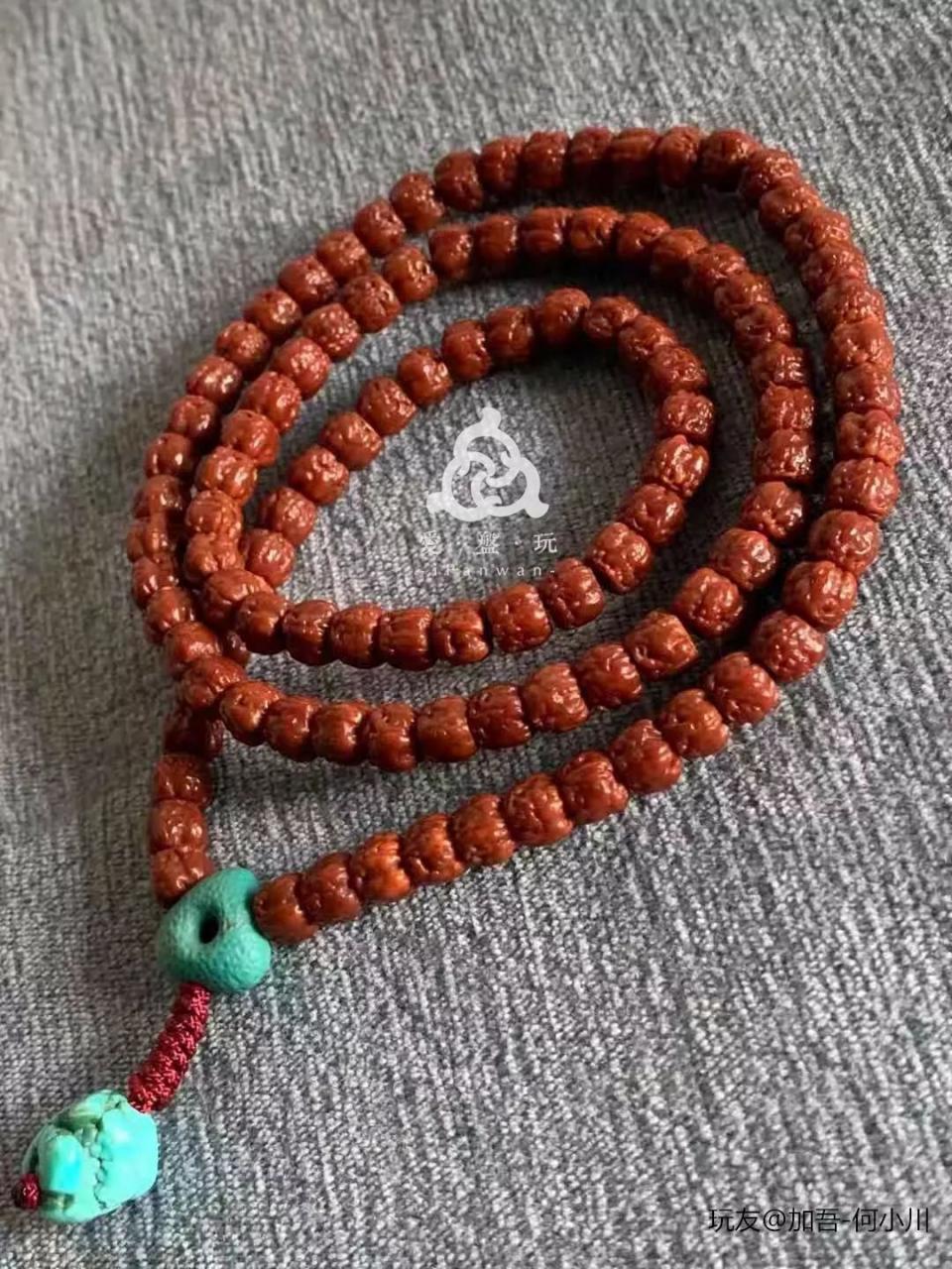 同为菩提籽,它们多是7、8mm尺寸左右的小串,串成108后,盘刷不需要太费心,短时间就有美美的包浆。