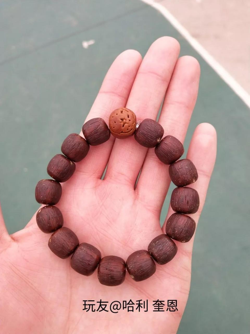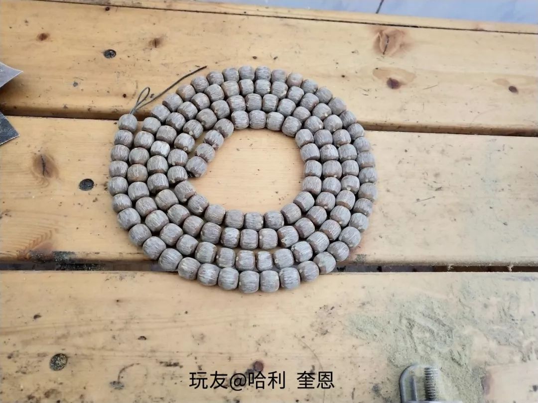 玩友@哈利 奎恩做的相对比较简单,做的是老型珠(也叫藏型珠),是将紫金鼠的两端磨掉,中间微修。
