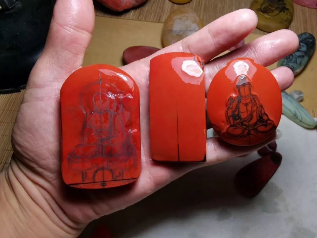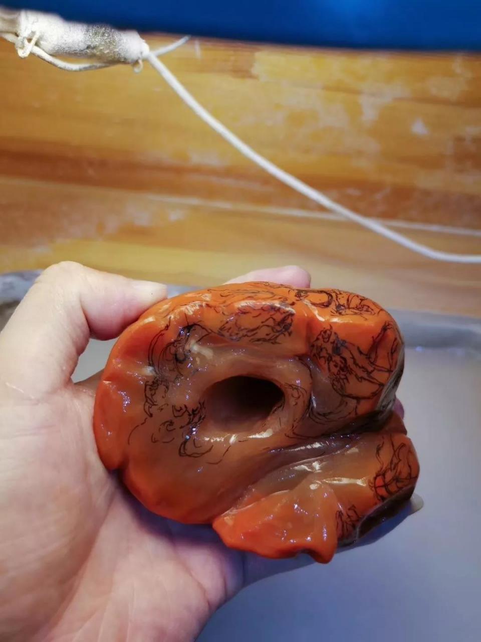开始雕刻,在雕刻中会出现一些意外,如裂,杂色这时雕刻师傅就会停下雕刻刀,重新烧脑设计,有时一件作品到了这步会搁置许久,有了灵感才再次动刀。