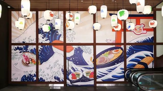 没错,这幅画就是那么的牛,几乎99.99%的日料店里都会出现这幅画!要么在帘子上,要么在海报上,要么在菜单上,反正总归有它的一席之地。