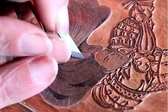 2.雕工雕版:将画师所绘画纸直接覆盖于木板上开始雕刻,雕完后画质也已经随木屑而掉落。雕刻完画作的线条后,雕版师需要将木板还给画师,让画师一一标注色彩的填充。当然色彩越少,制作过程越简单。之后再送到拓印公处。