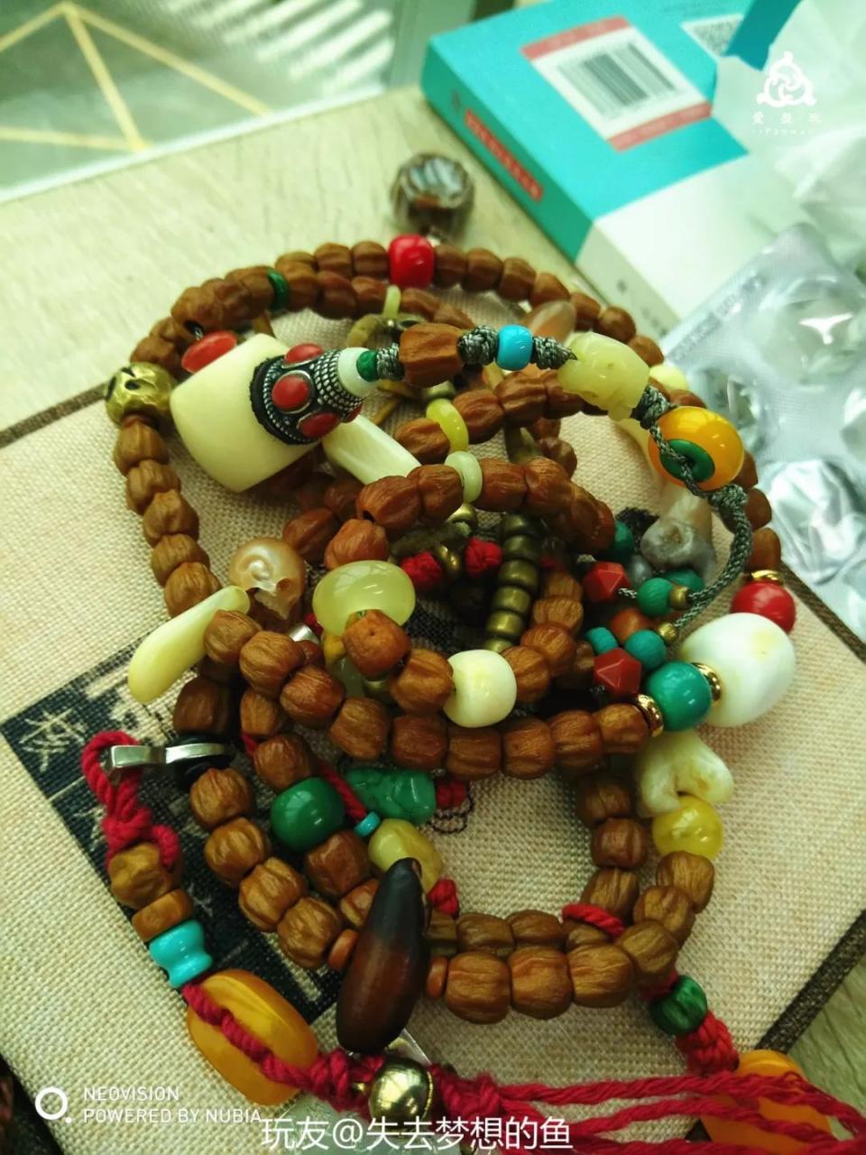 玩友@失去梦想的鱼  直接发来了一张图片:“老盘,我这手串配饰33种,能传世吗?