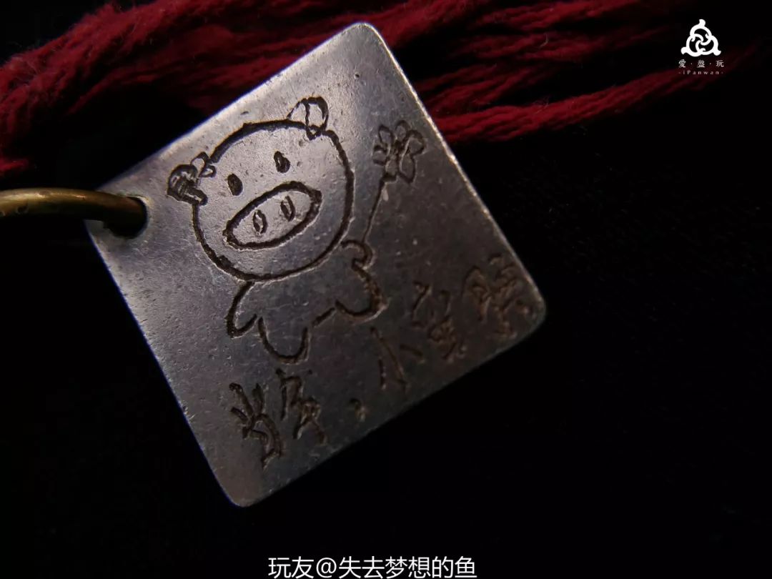 热恋的时候,女朋友花了一个小猪,他找人刻在银片上。