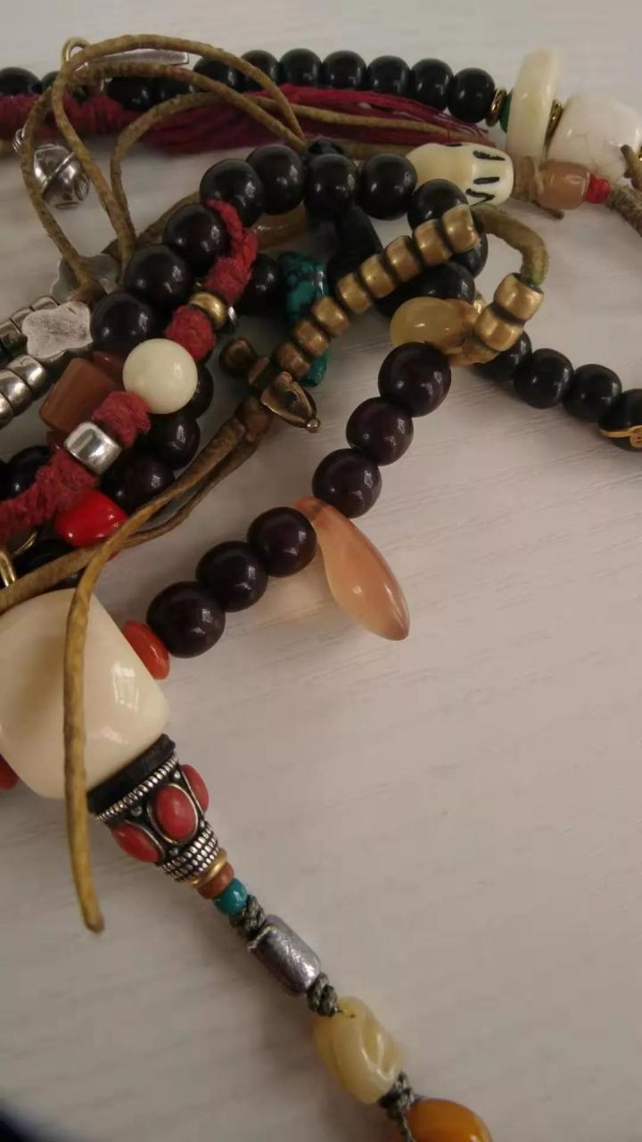 后来在西藏,喜欢上藏民手中的串串儿。回来之后,就想弄条自己的藏式手串,最开始是这样的,看起来还挺正常的哈