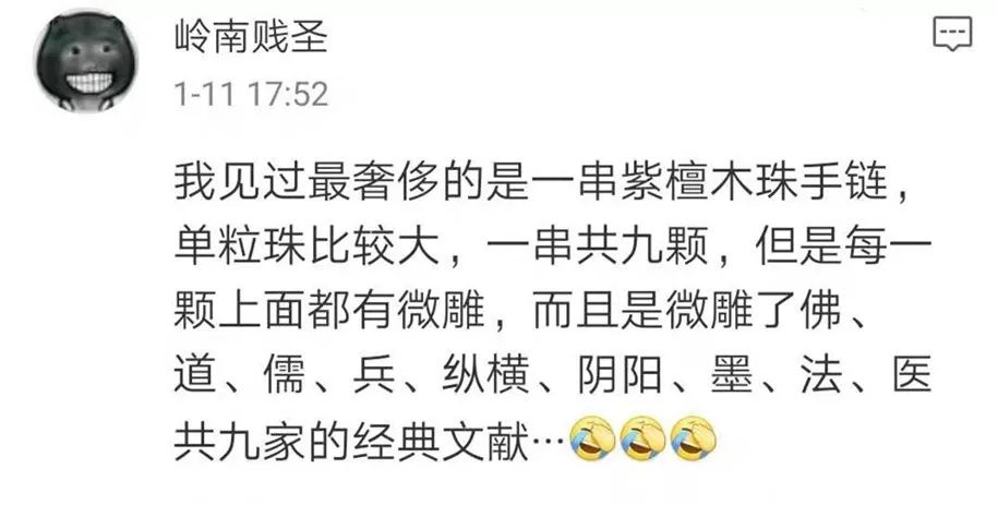 如果是真的,这是妥妥的土豪玩法!老盘不得不酸酸地说,如果这是串108,估计要凑齐诸子百家了……