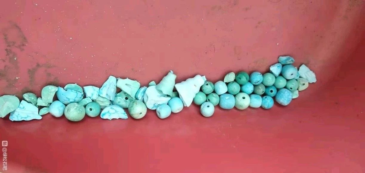 但是,老盘觉得,好像有点不对劲儿。作为假货,这些绿松石,也太不正经了。咱们看到的正经的假货,那都是下面这样的,高瓷高蓝完美料!