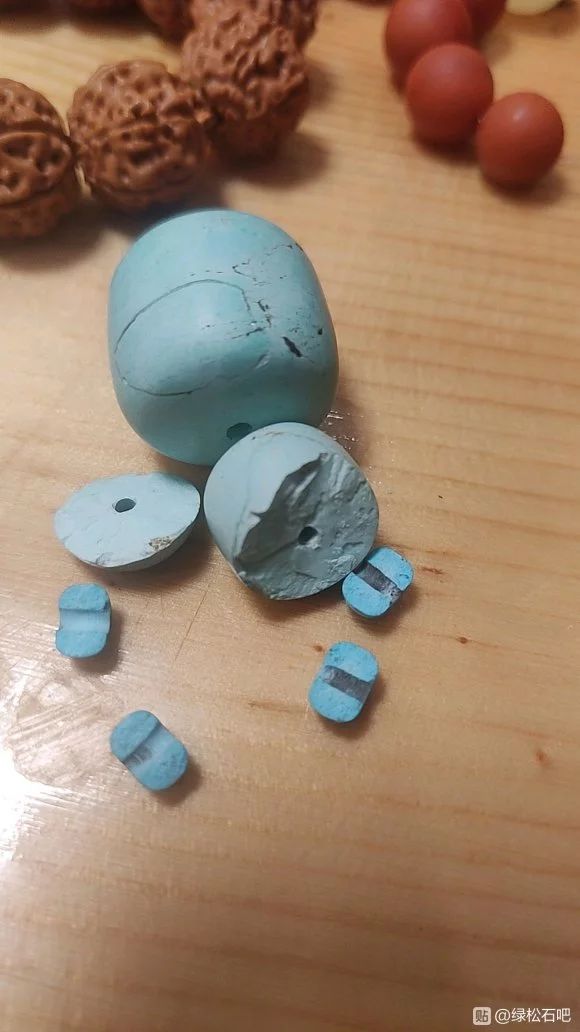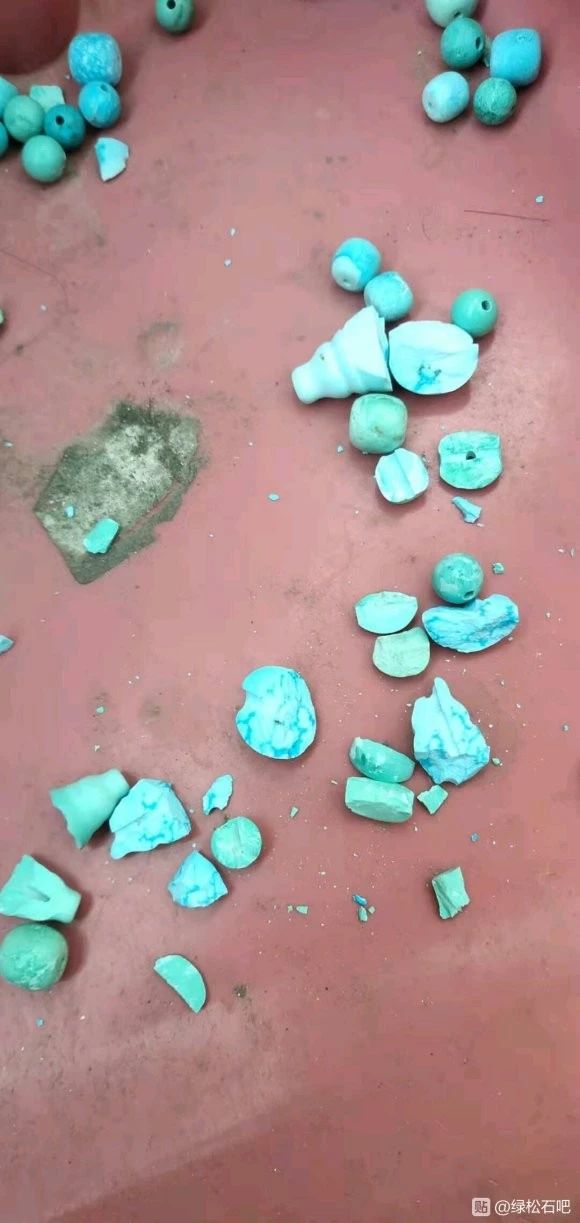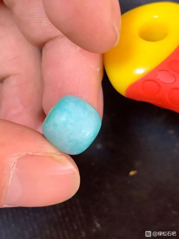 还有一个玩友贴出了自己的一颗低瓷绿松石的图片。