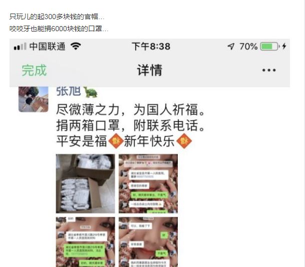 他晒出了自己的捐款记录,并配文说到:“只玩儿得起300块钱的官帽,咬牙也能捐得起6000的口罩!”此举引来玩友纷纷点赞!有玩友诚恳留言:同你的“廉价”官帽一比,手中的三棱暗淡无光。