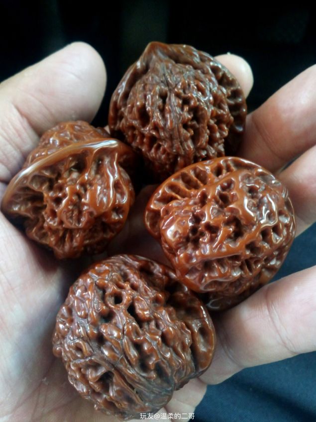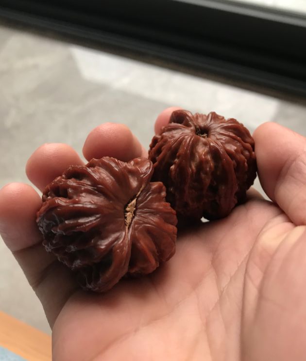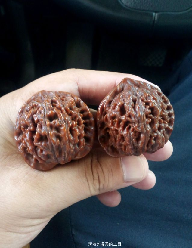 玩友@sukekiyo 一对核桃,从2013年直到现在几乎不怎么刷,出差时才带着,到现在颜色也红了,就是缝隙里有点尴尬。