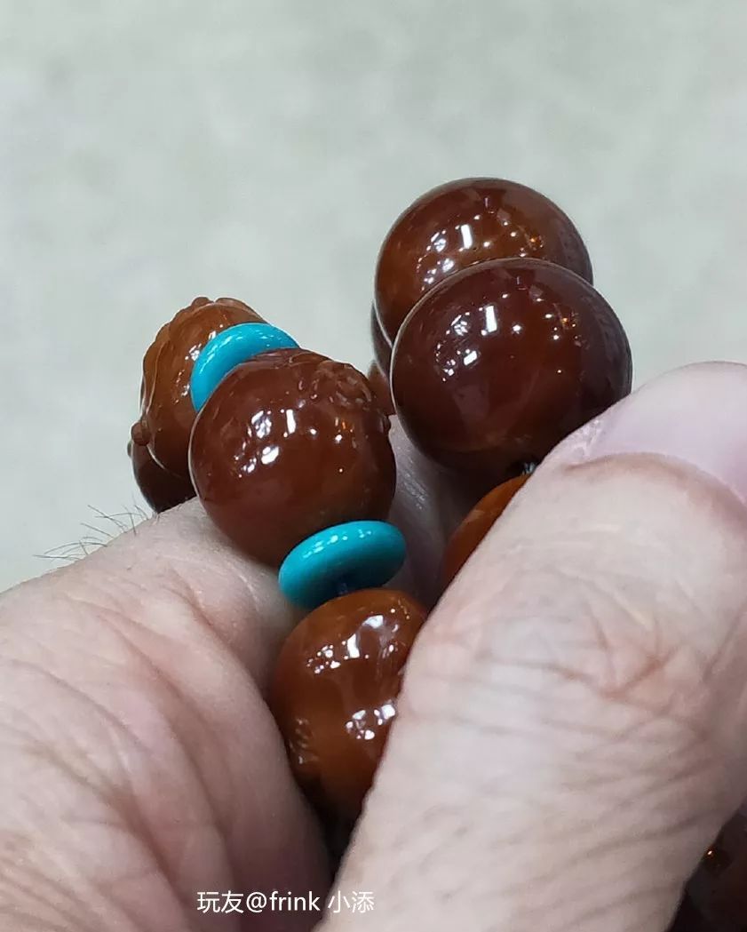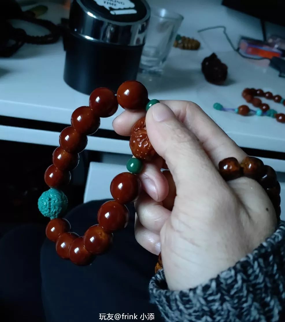 玩友@frink 小添 是盘玩9年的老玩家,他的手串每次亮相,都引起一片惊叹:自然光下都美得耀眼。