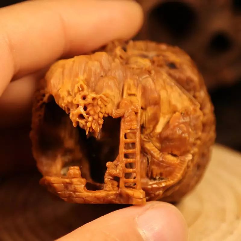 核桃雕刻与橄榄核雕刻有着些许不同,它有着自己的特点。