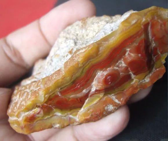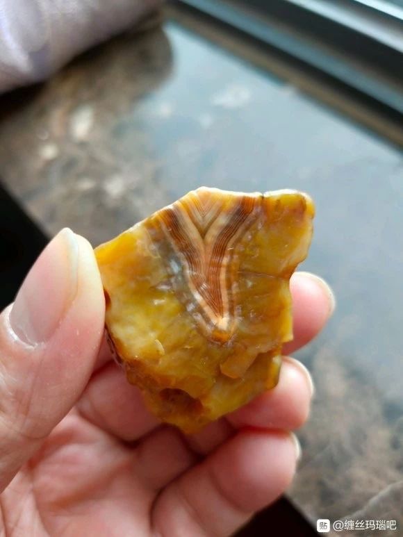 新疆玛瑙中比较常见,主色黄、红、白为主,形体不规则,奇形怪状啥都有。特点就是线条,宽如带细如丝,层层缠绕,故而得名。