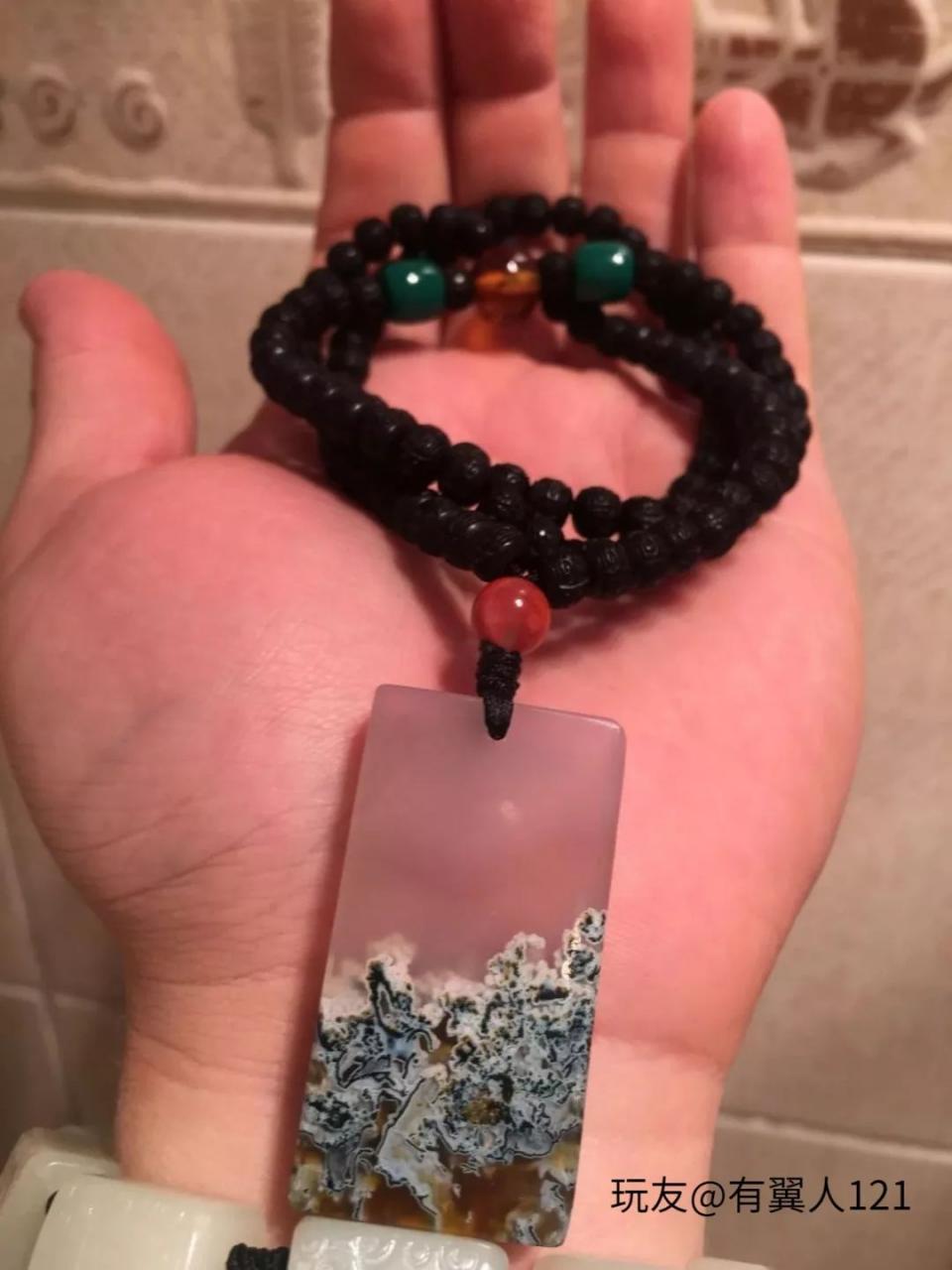 “老丈人在河边捡的石头磨的珠子,工费一百块,我说不值个工费钱,他还不信。看看这是什么料子啊?”玩友晒出了自己的手串,并说道。