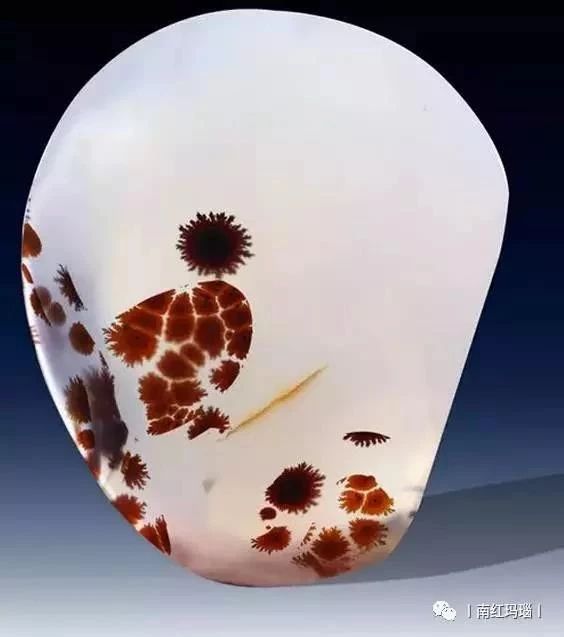海洋玉髓,颜色、图案、花纹都非常丰富的玛瑙。底色纯白如羊脂,花纹图案天造地设,多数丰富但没啥特点,如果很像某样东西,那就是极品了。