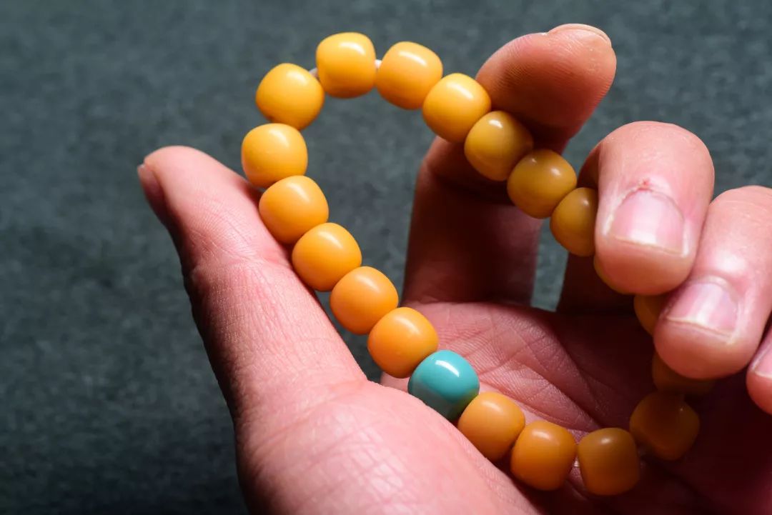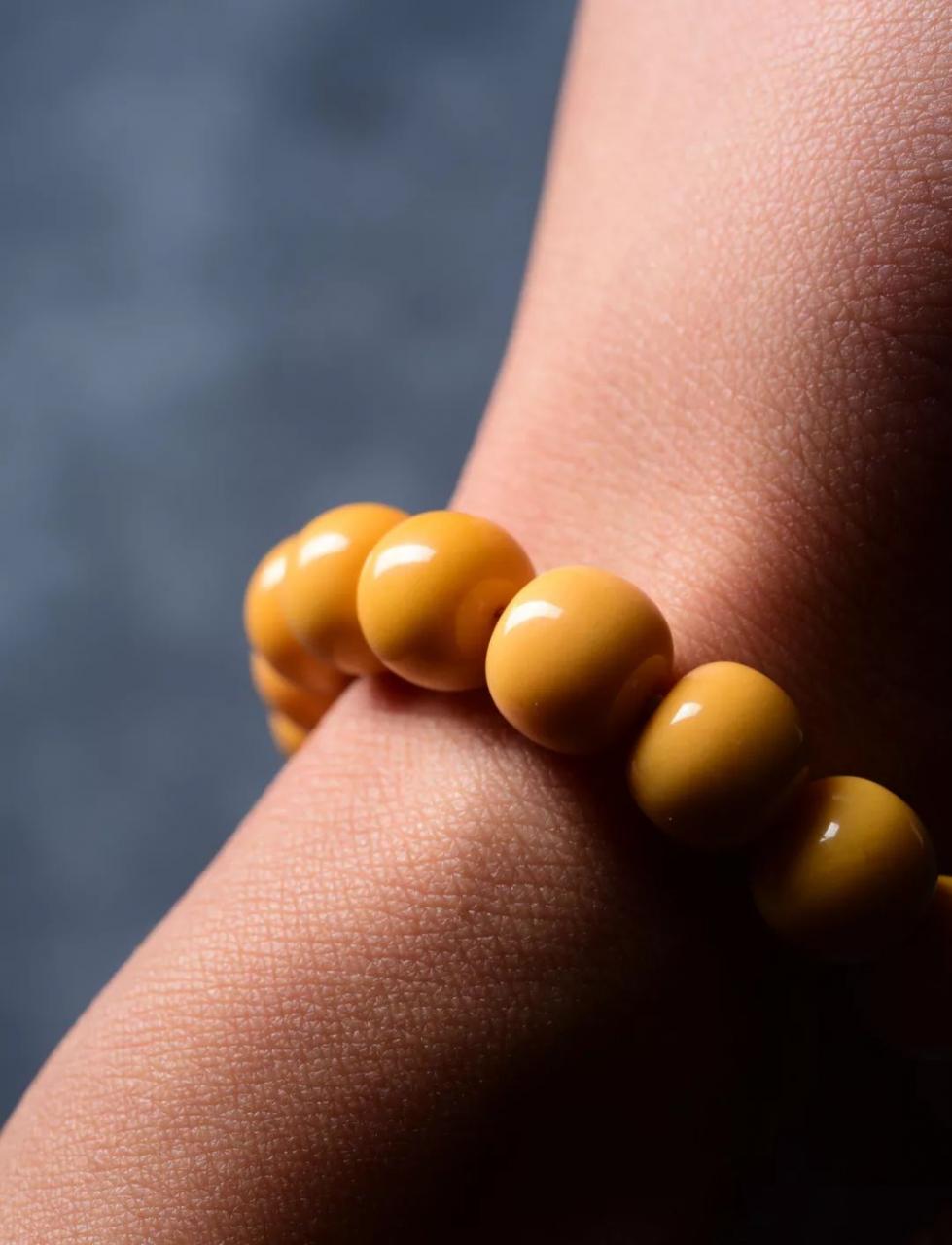 下图是我亲自盘玩一个月的老型手串,变色效果油糯均匀,玉质感强,爱不释手,上周尝试做了一些缅黄的配饰,搭配效果也是清新素雅,很有画龙点睛的作用,再加上价格也不贵,所以文玩圈的很多老玩家已经开始争相入手。