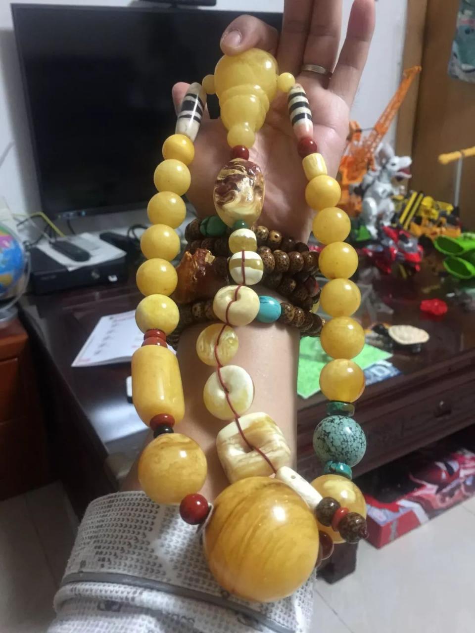 一颗不大尺寸的蜜蜡,配上朴素的菩提,搭配上不错的拍照技巧,确认过眼神,是文玩圈的精致男孩了!
