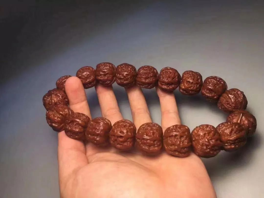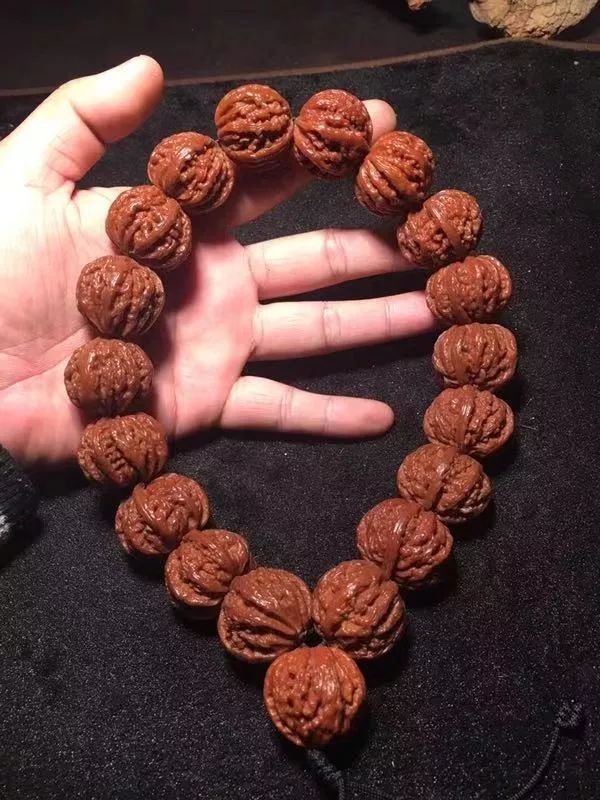全熟的水果都好吃,更何况是成熟的核桃。野生小核桃的成熟度要比大核桃高的多,又因为是野生的,纹路狂野,相当漂亮,这是任何一对文玩核桃都比不上的,也是不能复制的。串成串了,方便携带,既满足把玩核桃的乐趣,又满足盘玩手串的情节,一举两得。