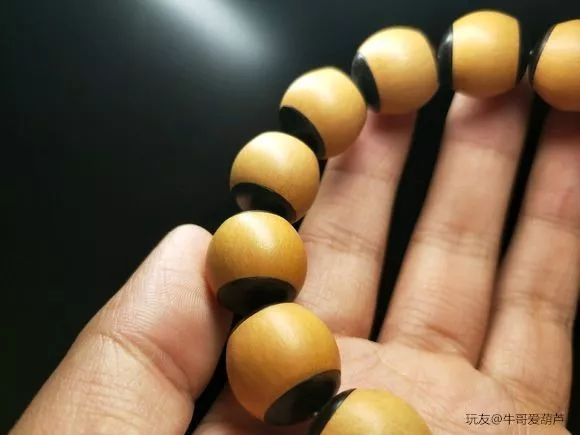 玩友@牛哥爱葫芦的这串葫芦肚+黑檀木,光晒皮色就晒了两年,颜色自然。