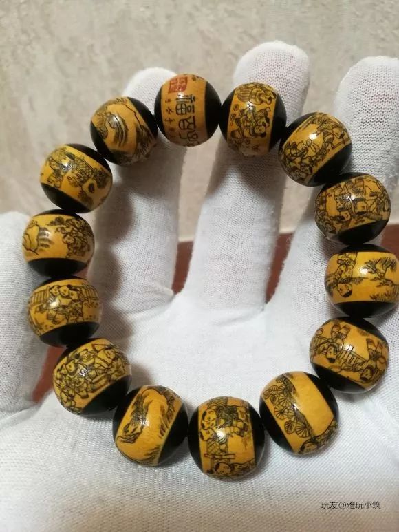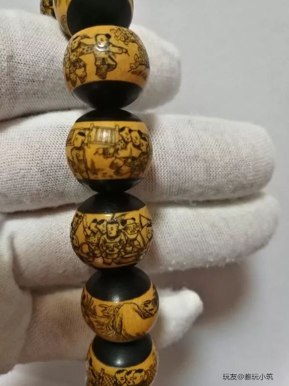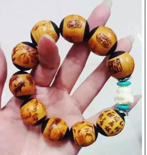 当然,有些个性化玩家将雕刻、烙画、镶嵌搭配融合一串,突出个人盘玩风格。