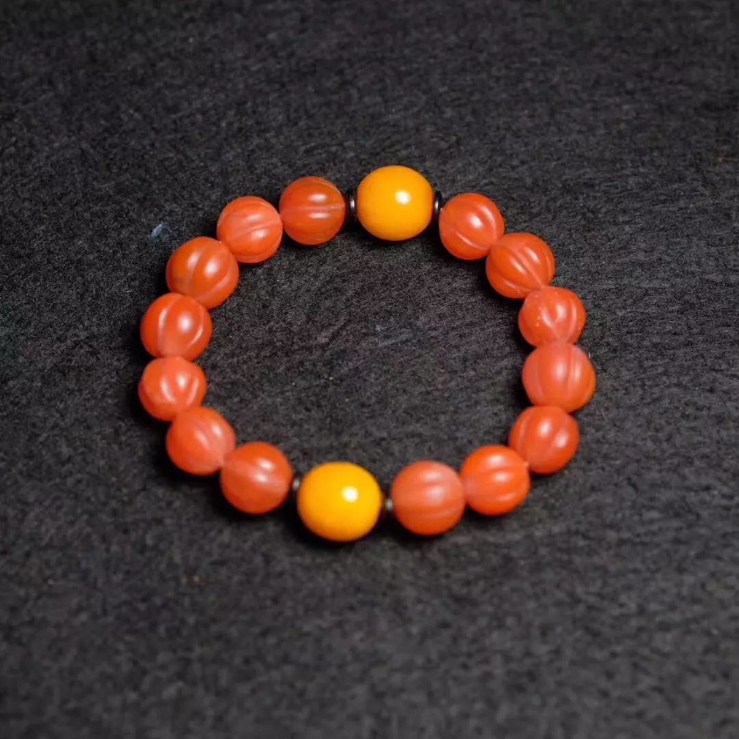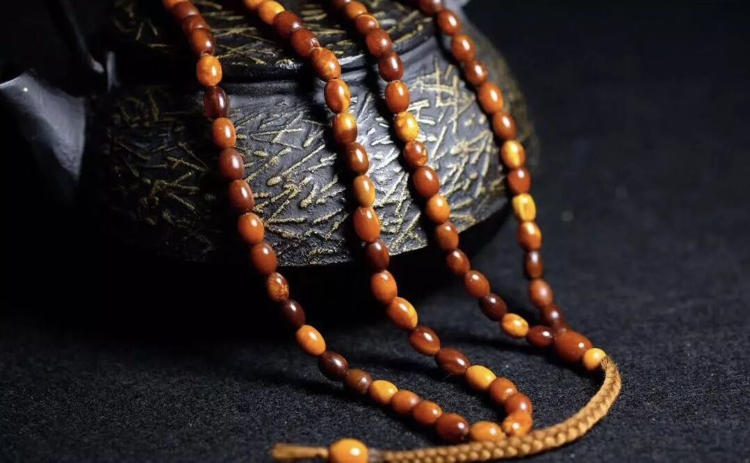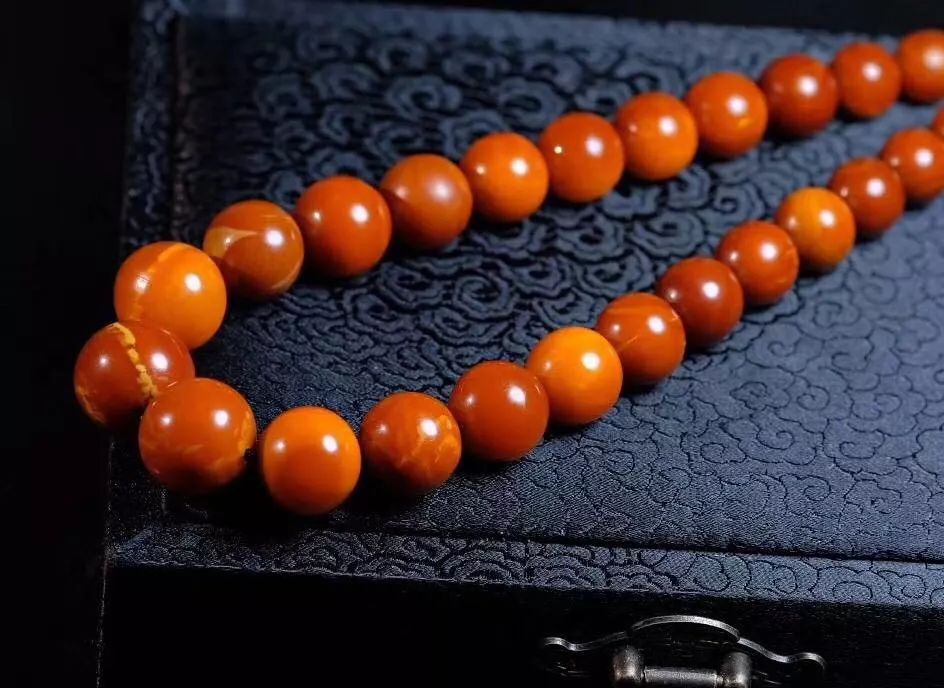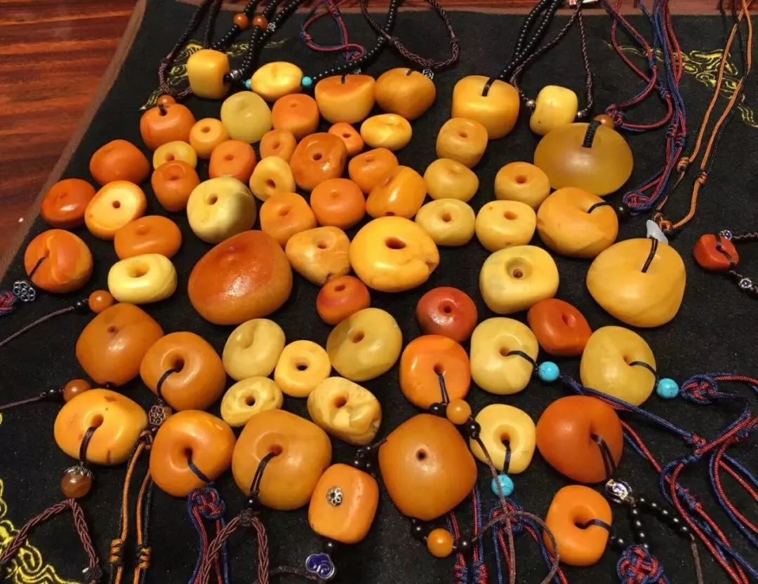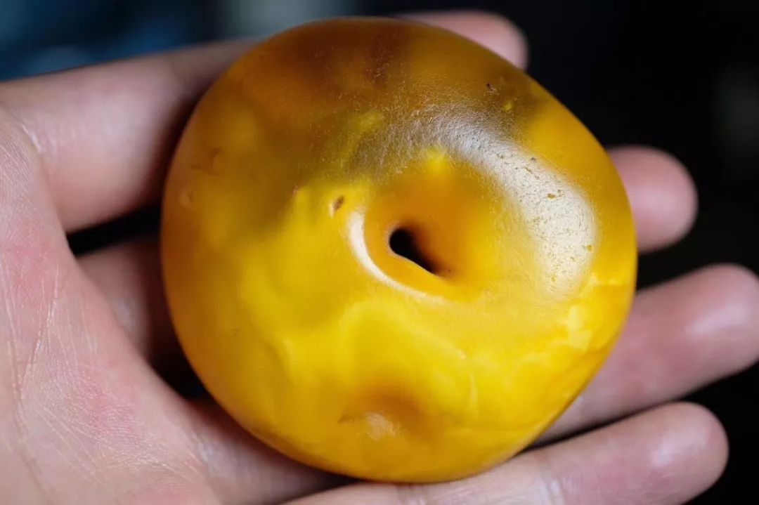除了饼子,现在市场中还有大量的枣形珠和圆形珠老蜡。这些老蜡大多都是作为念珠使用的,所以器型比较规整,伤痕也少,是老蜡玩家争相收藏的目标。