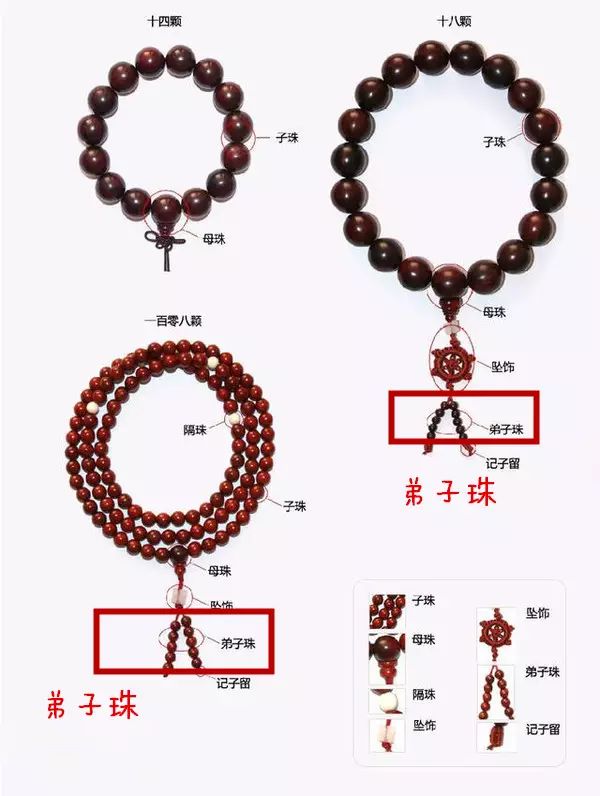 之前盘玩君也写过介绍子弟珠的相关文章:弟子珠的体积一般比子珠要小一些,多用六粒到十二粒不等的数目,平均排列为两例,一般起到装饰作用。