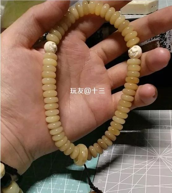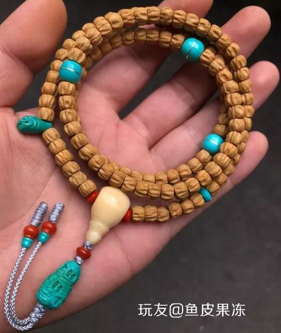 不过,现在的玩友们不信佛,给手串搭配弟子珠,都是起到一个装饰作用,一般带弟子珠的手串,看上去更加飘逸,至于材质,也是玩家们各显神通的地方,有玩家使用手串的备籽来做弟子珠,有玩家用单一的某种玉石,也有玩家用红绿灯…..总之,在自己经济允许范围内,可以可劲折腾。