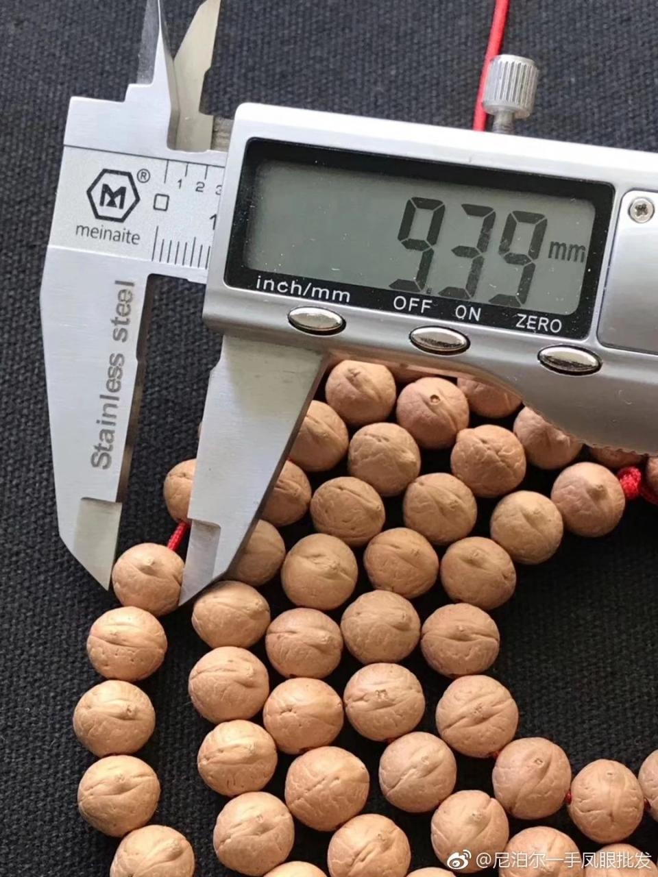 正常成熟的凤眼菩提,99%都介于13mm-15mm,这种情况下,越是小尺寸越是稀少,毫不夸张的说,一年间所有尼泊尔的树籽,能凑出8mm小尺寸108的也屈指可数。