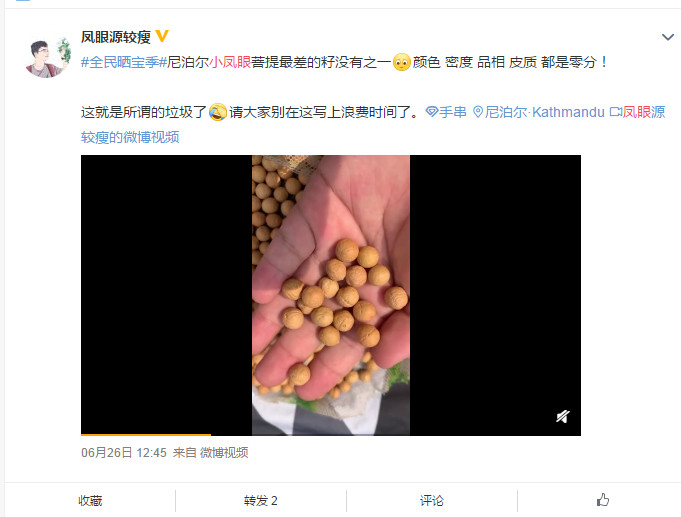 去到尼泊尔,你会发现很多看起来很好的小尺寸凤眼,其实,是村民们在遇水不好的时候,提前摘下来的,都是些发育不良,密度小的糠籽,容易盘花,没有盘玩价值。