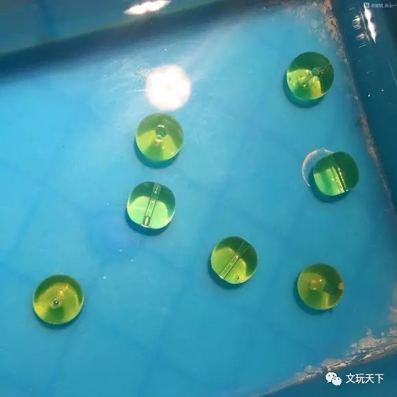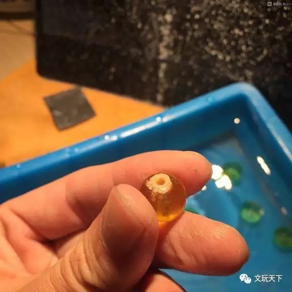 接着,每换一次更细的金刚砂时,都需要把琥珀珠放到干净的清水中,洗干净。