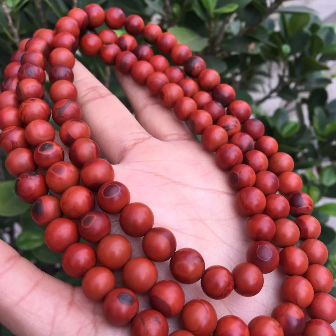 ▲宝玉石级南红柿子红包浆手串