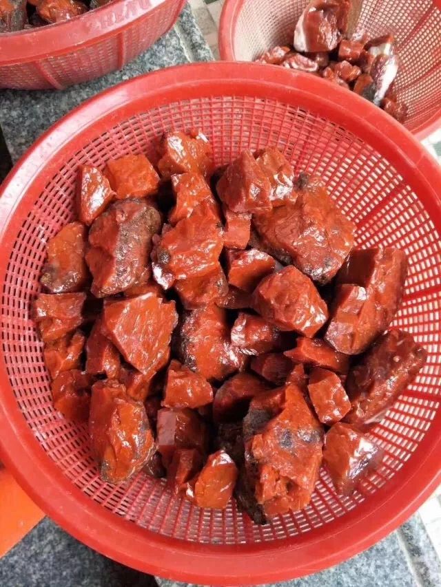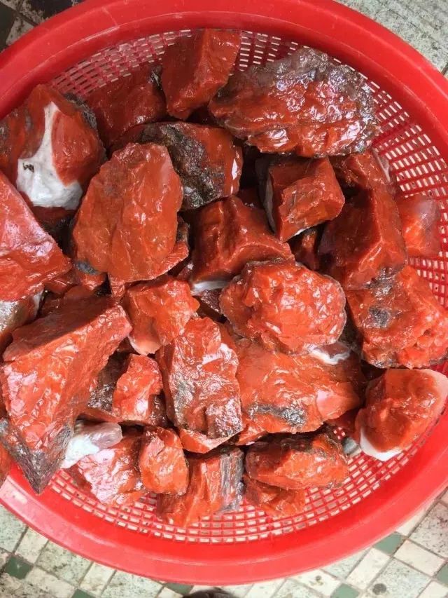 2、包浆料南红最为特殊神奇的一点在于,长期佩戴把玩会越来越红。无论是原石还是用其做成的成品,稍加盘玩,就会越发艳丽。