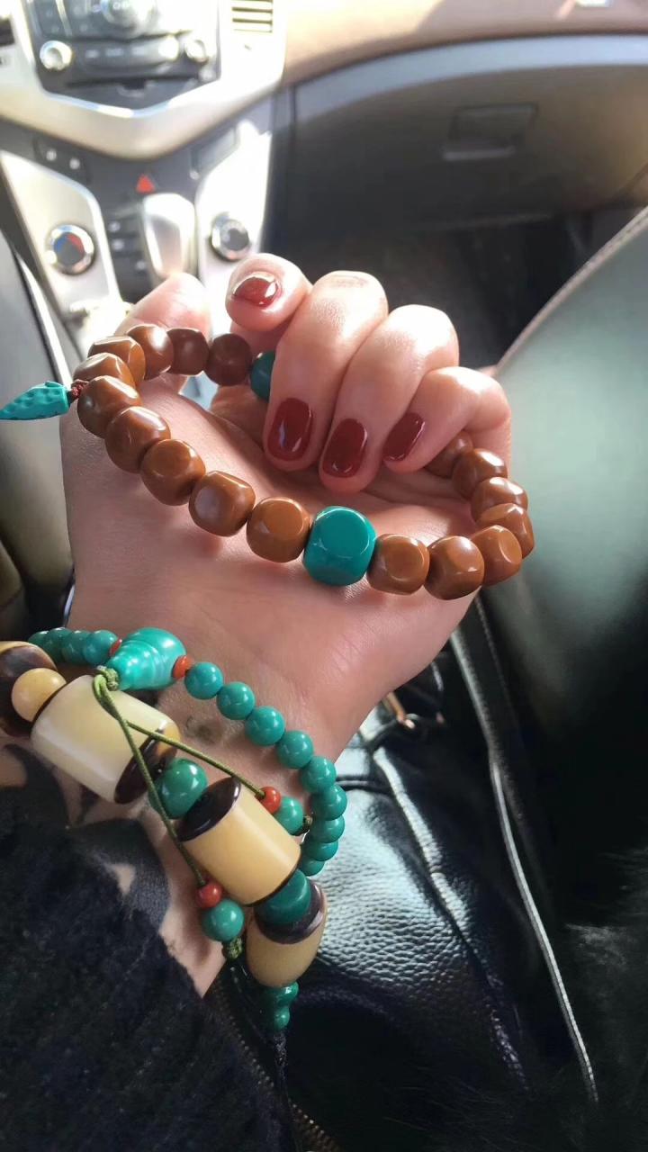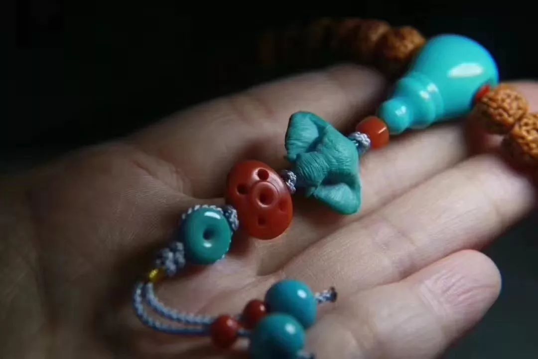 根据多年玩文玩的经验来看,随着玩友们眼界的提高,现在很多人都摒弃了练手的环节,并开始向着追求一步到位出发。意思就是,大家现在更希望一步到位,一次性买到适合自己的,而不是先买来试着配配,尤其是绿松石这种比较稀少且价格昂贵的配饰,买一堆用不上的也比不上一颗适合自己的。因此,对于配饰来说,那些通过纯手工修型的配饰,便更能够与主珠完美契合。