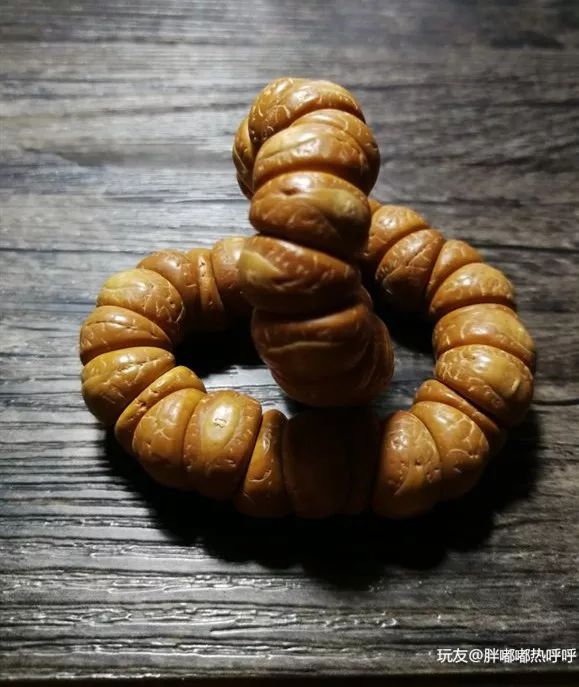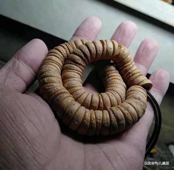 跟金刚伏魔圈一样,能拿来切片的凤眼菩提皆非精品,但盘得就是个性和乐趣。按照切片打磨的厚度看,每串细小的厚度变化,成串后都有不同的观感——