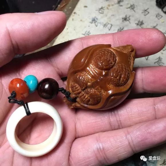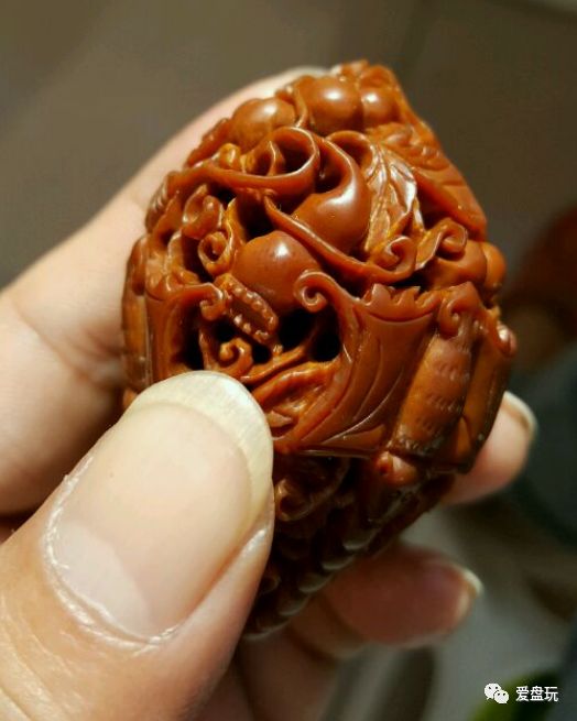 ▲印尼橄榄核表面有白色网状纹路。玩友@悦微小舍