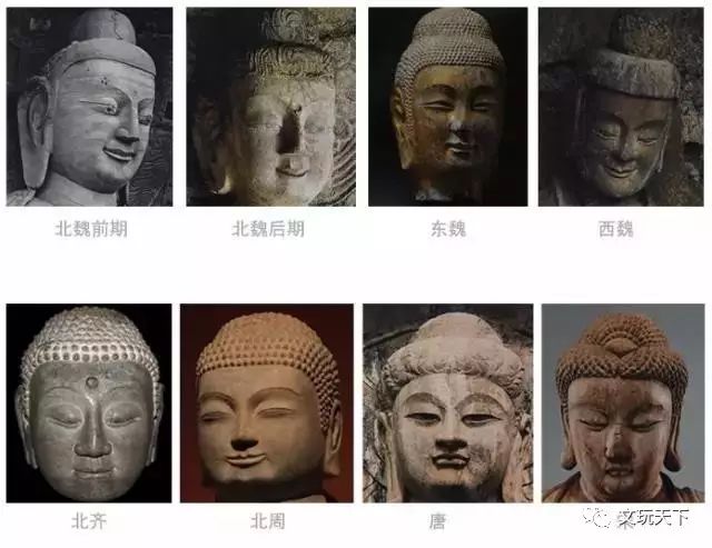 然而,随着时代的发展,审美思想的变革,以汉化为主体走向的佛陀形象,又在各个时期拥有了不同的特点。其中,光就佛头发式就大致发展出了水波发、涡卷发、 螺发、磨光发髻四种。