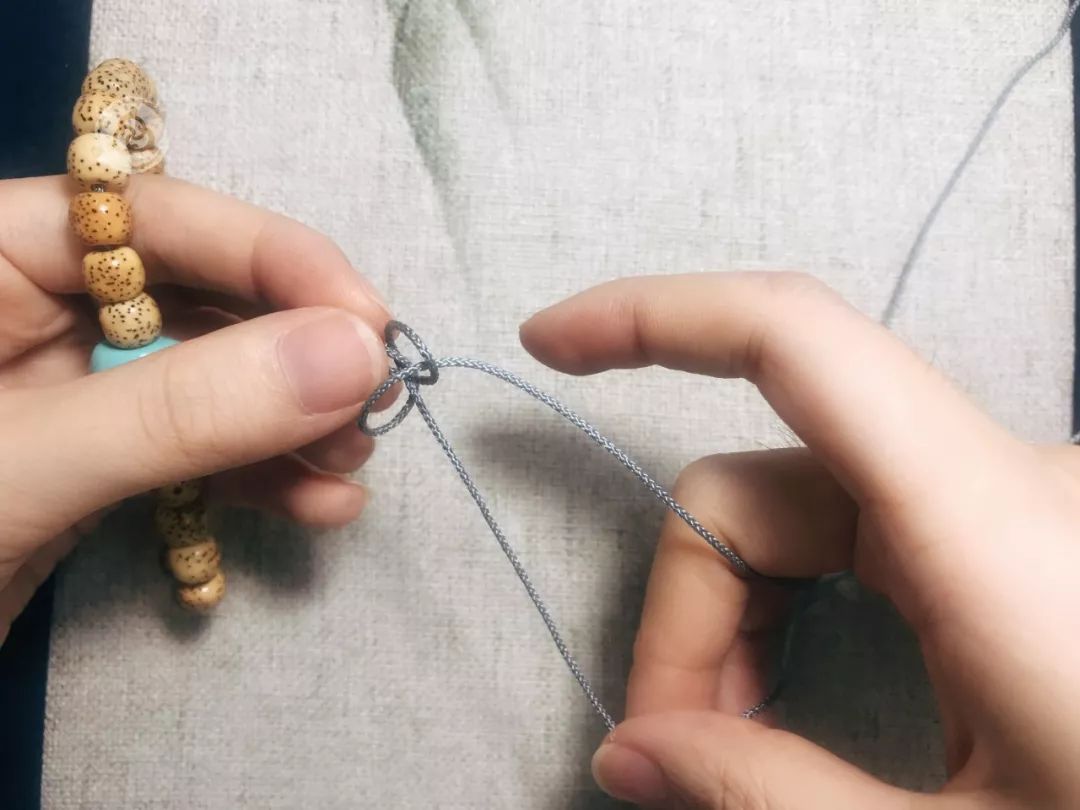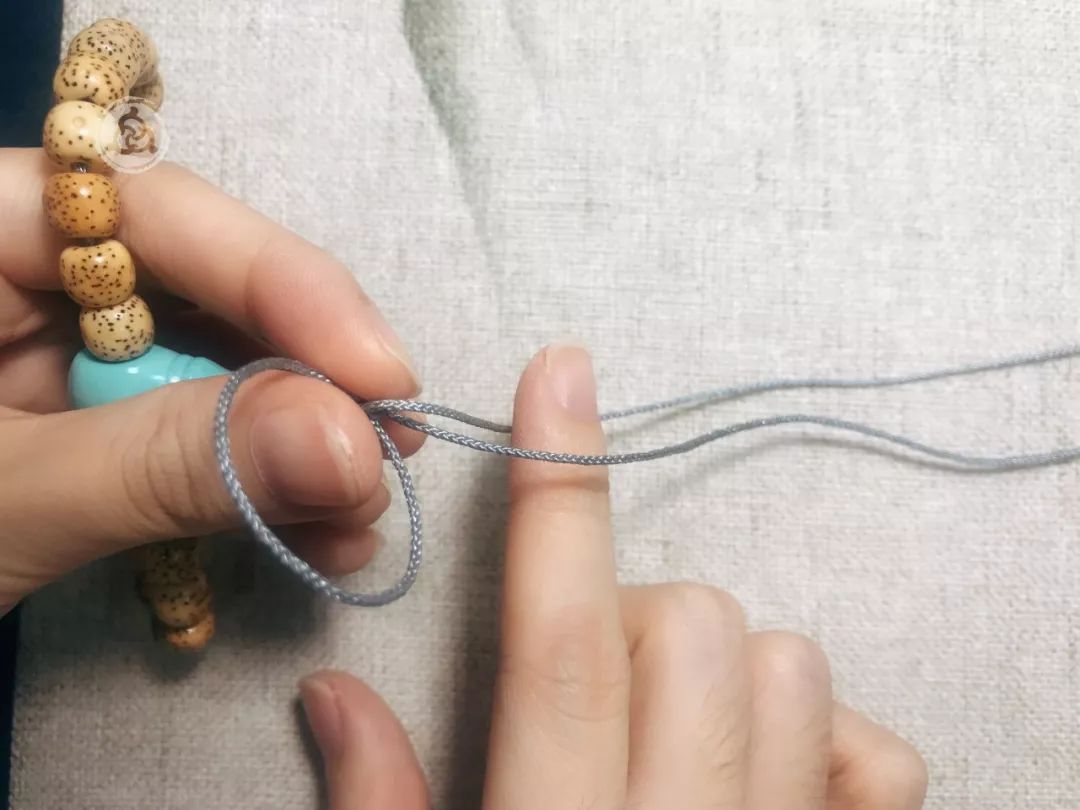 第三步:将另外一根线,穿过上一步骤中形成的小圈圈里。