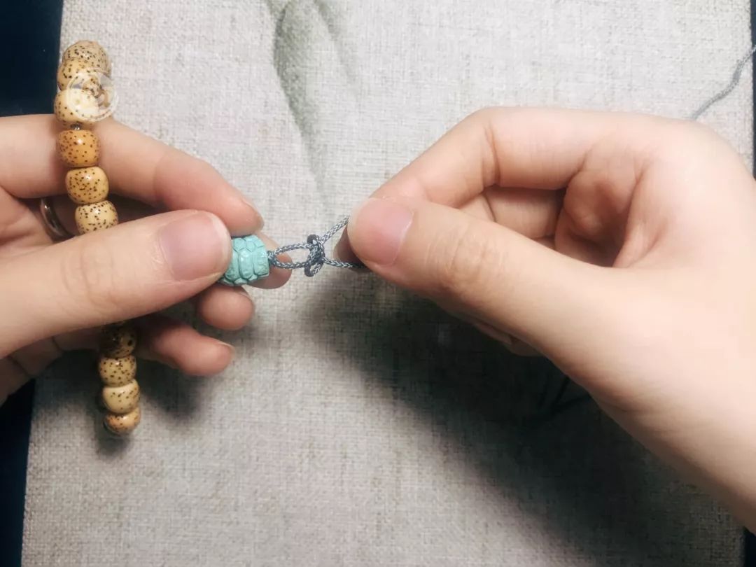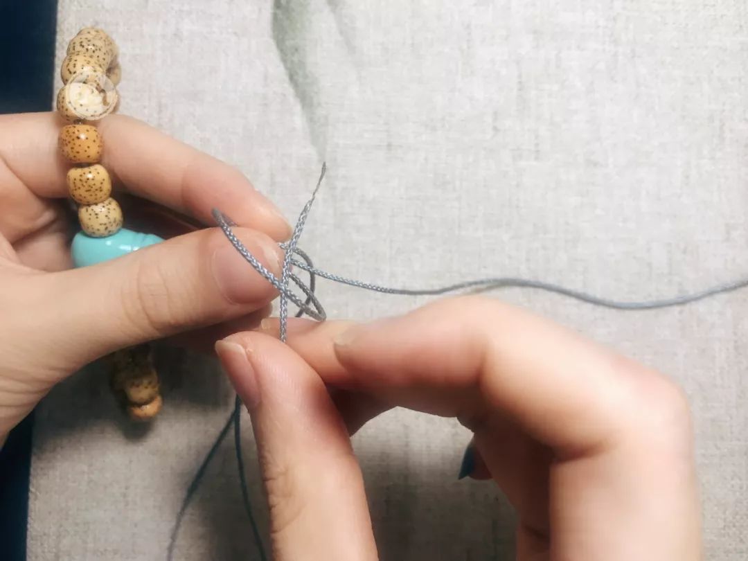特别是多颗珠子进行编织的过程中,蛇结更容易定型,金刚结不如蛇结方便一些▼