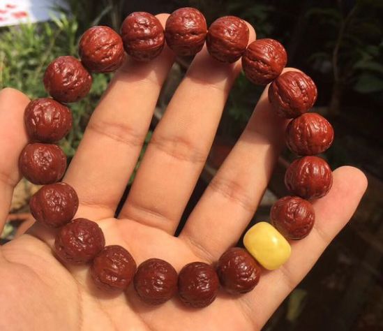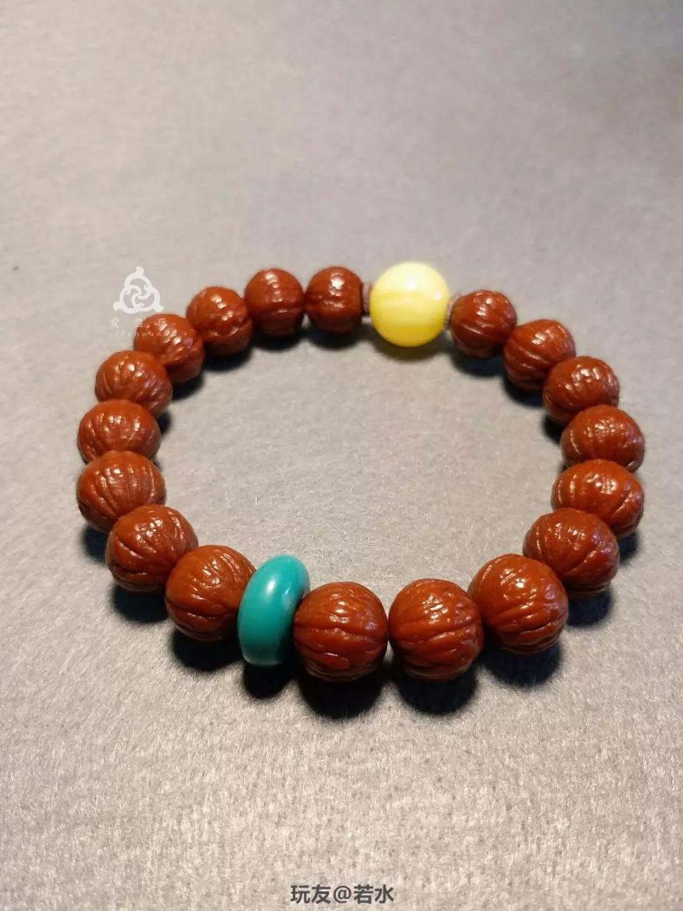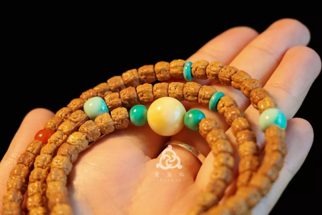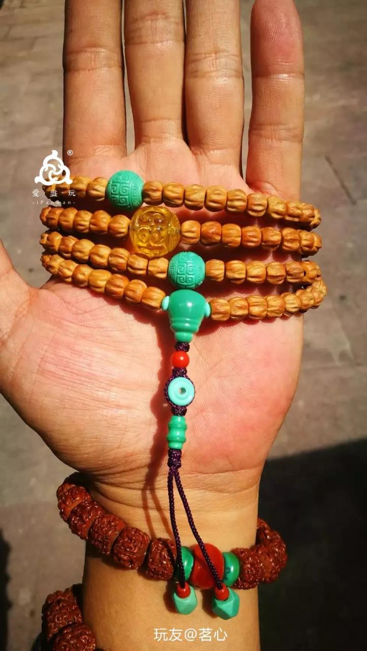 猴头不易裂,变色很快,而且搭配出来,也很出效果。此外从价格上来说,跟橄榄核圆珠相比,猴头核桃算是便宜很多了。
