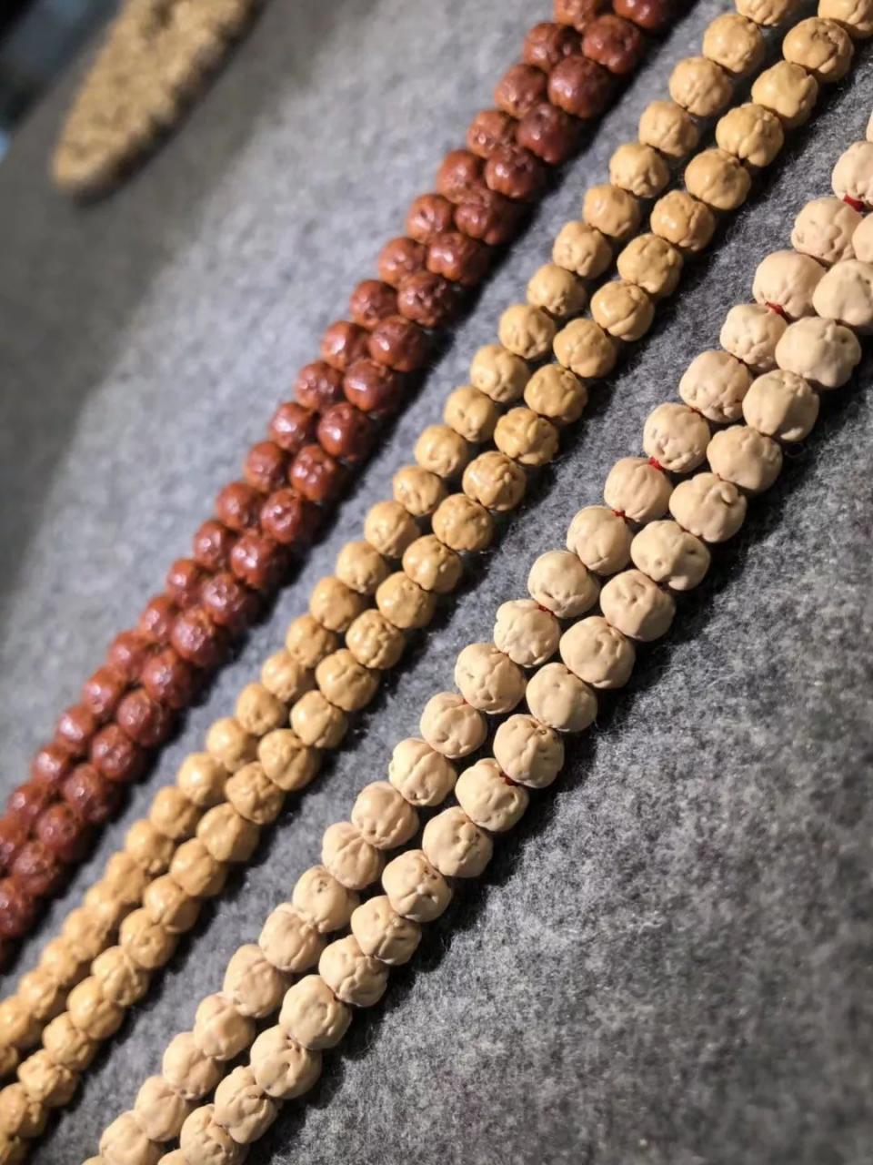 但是后来,商家开始研究,不如把外皮打磨掉。打磨掉外皮的百香籽,变得干净多了,而且赶上了小尺寸菩提的流行热潮。