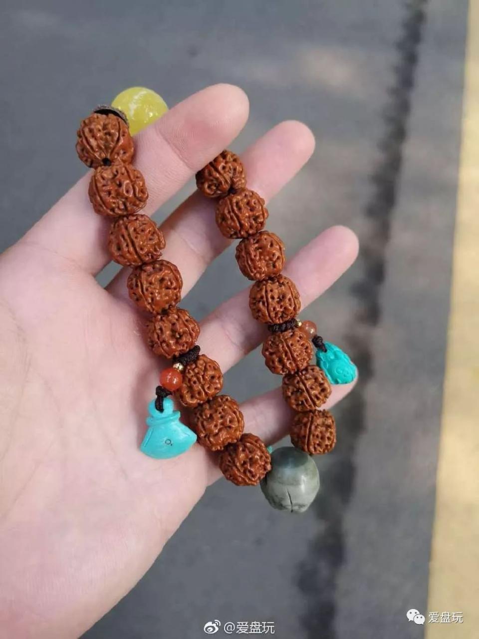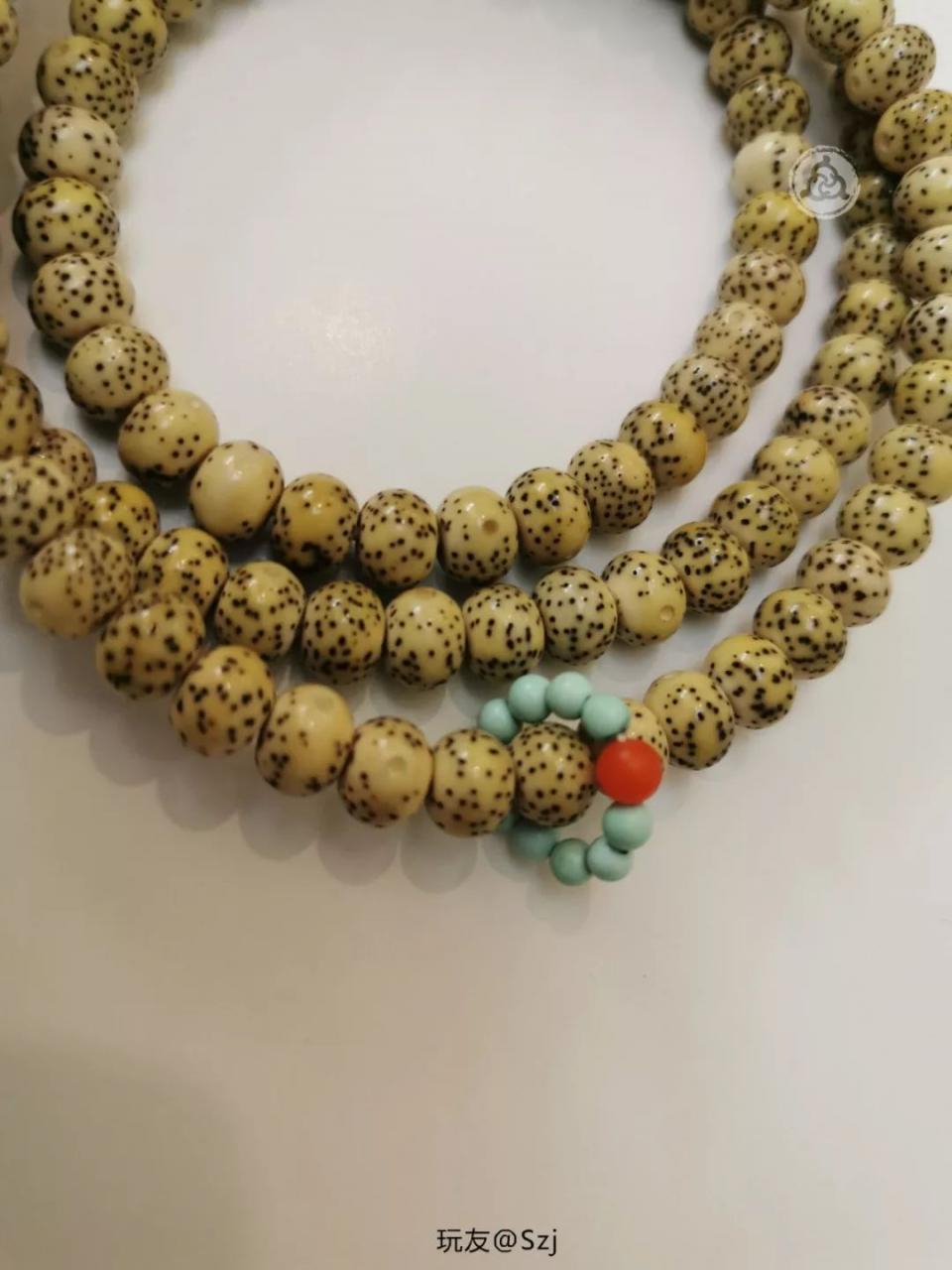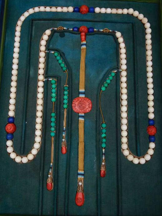 老盘手机里保存了一张清朝的朝珠照片,上面就是用绿松石小米珠做的计数器,印象非常深刻。