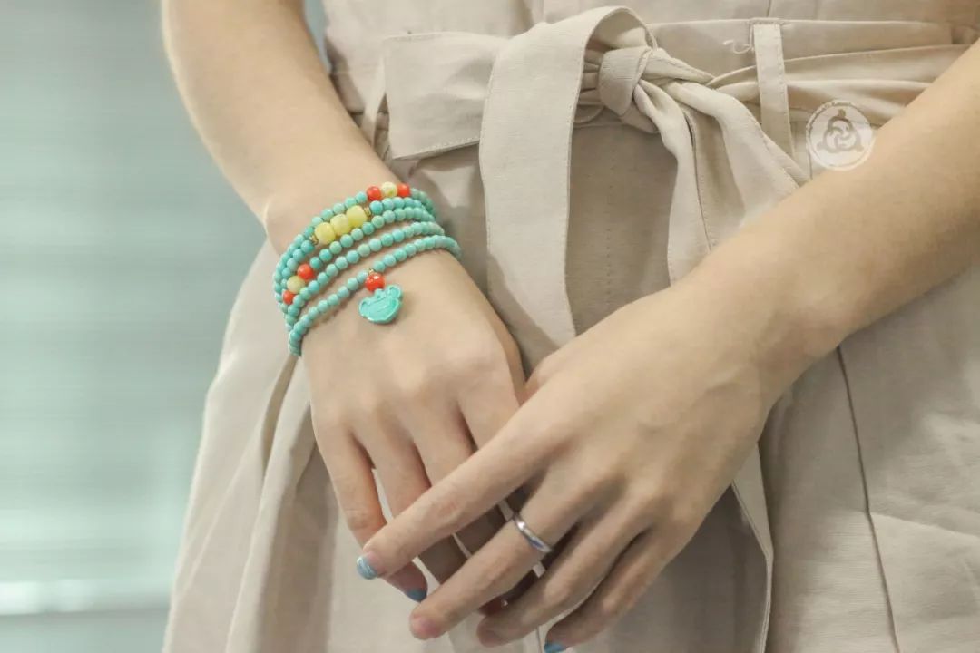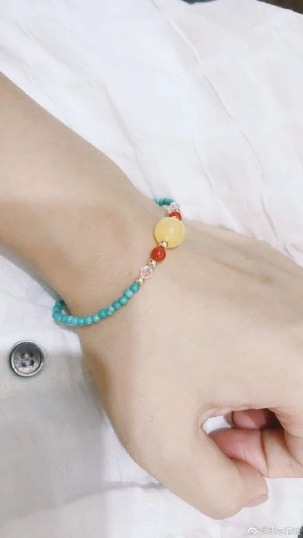 如果有多余的配饰,还可以搭配起来,搭配出来佩戴的效果,不比一条108绿松石手串逊色。